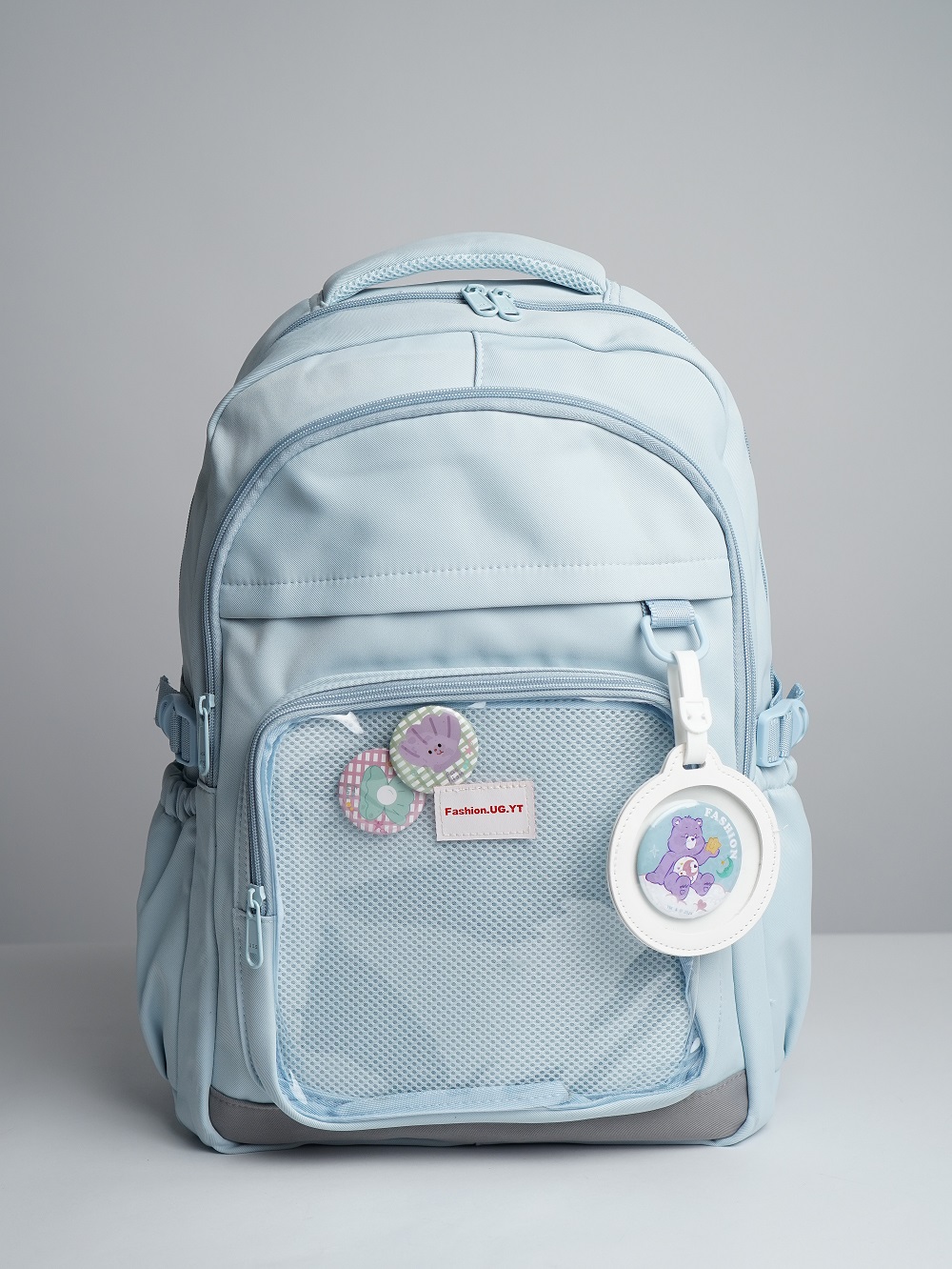 Голубой цвет рюкзака придает ему свежесть и яркость, делая его заметным аксессуаром.