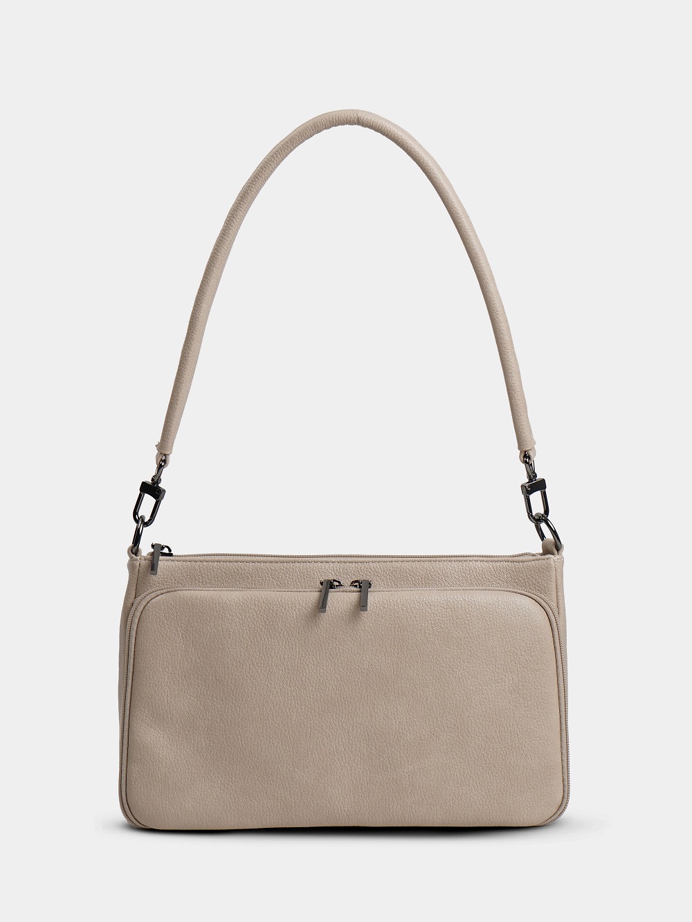 Сумка оснащена одним внутренним отделением и двумя внешними карманами для быстрого доступа к вещам. Застежка на молнии гарантирует сохранность содержимого и легкий доступ к нему.